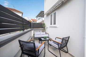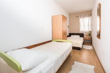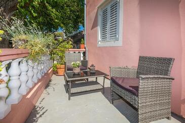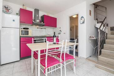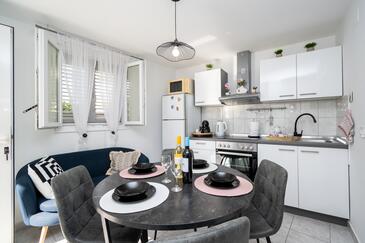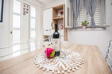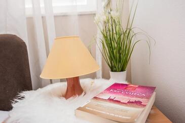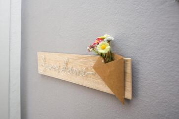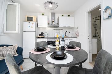 Ferienwohnung bietet Platz für 5 Gäste. Die Betten sind in Schlafzimmern, die es 2 gibt, innerhalb einer Gesamtfläche von 47m2, angeordnet. Die Gäste haben eine eigene Terrasse zur Verfügung, auf der sie in warmen Sommernächten genießen können. Das Apartment bietet Meerblick. Es ist erlaubt, Speisen auf dem Gemeinschafts-Grill vorzubereiten. In der Unterkunftseinheit besteht die Möglichkeit des Mitbringens von Haustieren gegen Aufpreis.