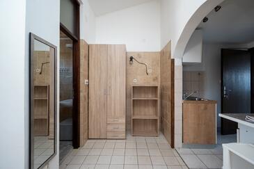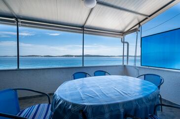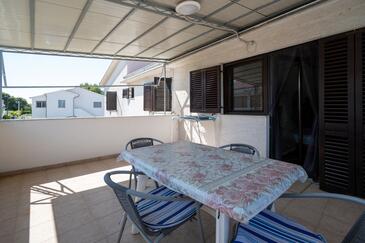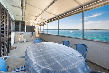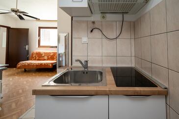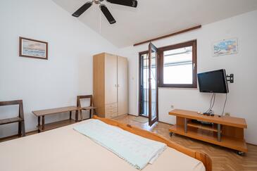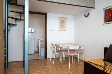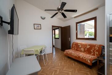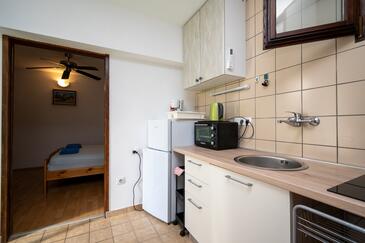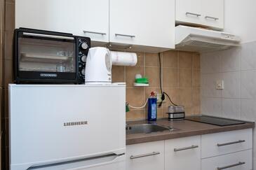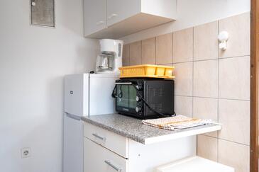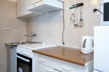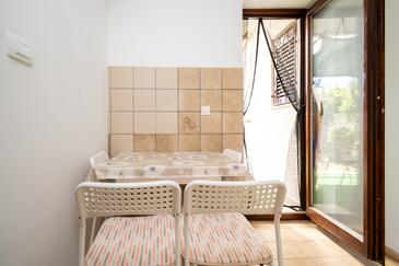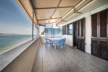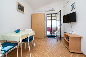 Ferienwohnung bietet Platz für 4 Gäste. Die Betten sind in Schlafzimmern, die es 1 gibt, und in Wohnzimmer, innerhalb einer Gesamtfläche von 42m2, angeordnet. Die Gäste haben eine eigene Terrasse zur Verfügung, auf der sie in warmen Sommernächten genießen können. Das Apartment bietet Meerblick. Es ist erlaubt, Speisen auf dem Gemeinschafts-Grill vorzubereiten.