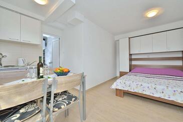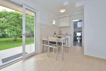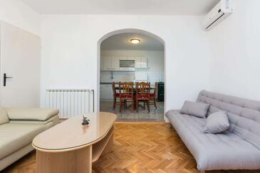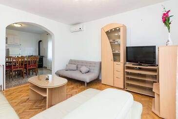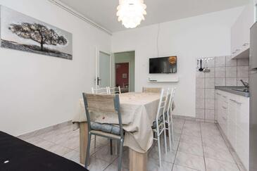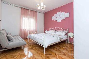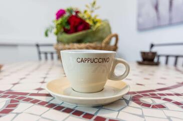 Ferienwohnung bietet Platz für 6 Gäste. Die Betten sind in Schlafzimmern, die es 3 gibt, innerhalb einer Gesamtfläche von 79m2, angeordnet. Die Gäste haben eine eigene Terrasse zur Verfügung, auf der sie in warmen Sommernächten genießen können. Es ist erlaubt, Speisen auf dem Gemeinschafts-Grill vorzubereiten.