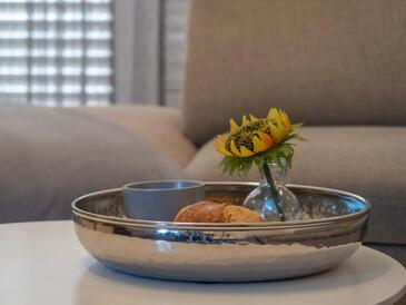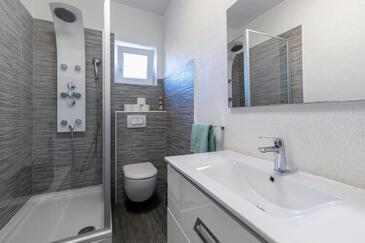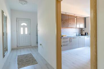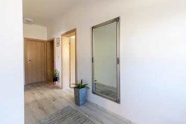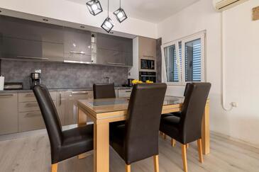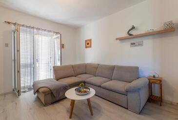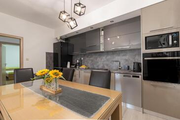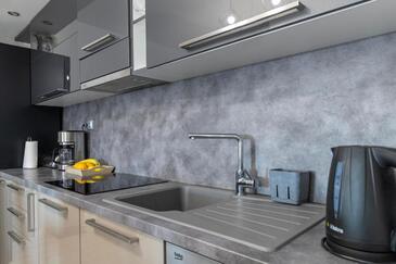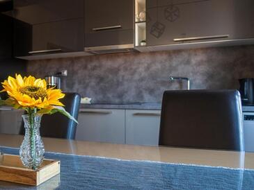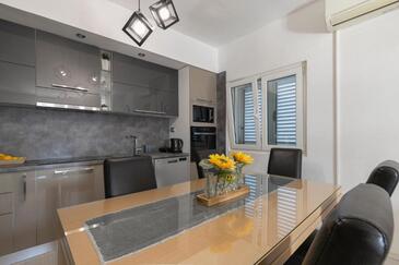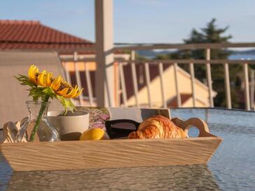 Ferienwohnung bietet Platz für 5 Gäste. Die Betten sind in Schlafzimmern, die es 2 gibt, und in Wohnzimmer, innerhalb einer Gesamtfläche von 80m2, angeordnet. Die Gäste haben eine eigene Terrasse zur Verfügung, auf der sie in warmen Sommernächten genießen können. Das Apartment bietet Meerblick. Es ist erlaubt, Speisen auf dem Gemeinschafts-Grill vorzubereiten. Räume der gebuchten Unterkunftseinheit werden nicht in eine Ganze verbunden.