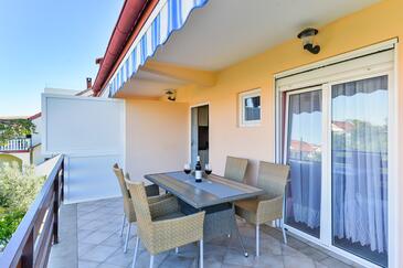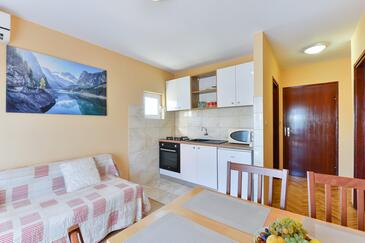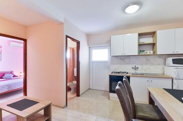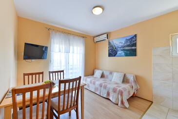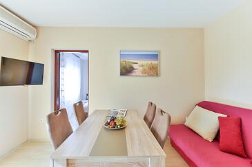 Ferienwohnung bietet Platz für 4 Gäste. Die Betten sind in Schlafzimmern, die es 1 gibt, und in Wohnzimmer, innerhalb einer Gesamtfläche von 31m2, angeordnet. Die Gäste haben einen eigenen Balkon zur Verfügung, auf der sie in warmen Sommernächten genießen können. Das Apartment bietet Meerblick. Es ist erlaubt, Speisen auf dem Gemeinschafts-Grill vorzubereiten.