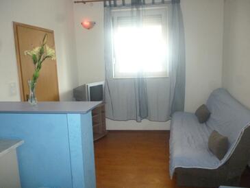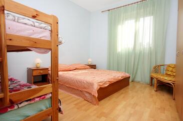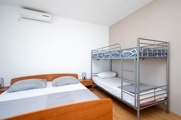 Ferienwohnung bietet Platz für 6 Gäste. Die Betten sind in Schlafzimmern, die es 2 gibt, innerhalb einer Gesamtfläche von 57m2, angeordnet. Die Gäste haben eine eigene Terrasse zur Verfügung, auf der sie in warmen Sommernächten genießen können. Das Apartment bietet Meerblick. Es ist erlaubt, Speisen auf dem Gemeinschafts-Grill vorzubereiten.