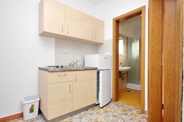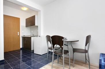 Studio bietet Platz für 3 Gäste. Die Betten sind in Schlafzimmern, die es 1 gibt, und in Esszimmer, innerhalb einer Gesamtfläche von 24m2, angeordnet. Die Gäste haben einen eigenen Balkon zur Verfügung, auf der sie in warmen Sommernächten genießen können. Das Studio-Apartment bietet Meerblick. Es ist erlaubt, Speisen auf dem Gemeinschafts-Grill vorzubereiten. In der Unterkunftseinheit besteht die Möglichkeit des Mitbringens von Haustieren, und die Dienstleistung ist im Preis der Unterkunft enthalten.