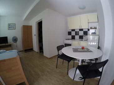 Ferienwohnung bietet Platz für 4 Gäste. Die Betten sind in Schlafzimmern, die es 2 gibt, innerhalb einer Gesamtfläche von 40m2, angeordnet. Die Gäste haben einen eigenen Balkon zur Verfügung, auf der sie in warmen Sommernächten genießen können. Das Apartment bietet Meerblick.