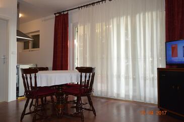 Ferienwohnung bietet Platz für 4 Gäste. Die Betten sind in Schlafzimmern, die es 1 gibt, und in Wohnzimmer, innerhalb einer Gesamtfläche von 40m2, angeordnet. Die Gäste haben eine eigene Terrasse zur Verfügung, auf der sie in warmen Sommernächten genießen können. Das Apartment bietet Meerblick. Es ist erlaubt, Speisen auf dem Gemeinschafts-Grill vorzubereiten.