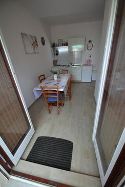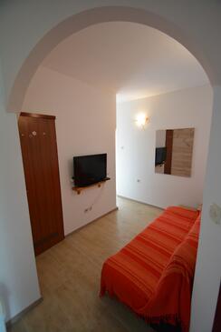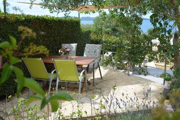 Ferienwohnung bietet Platz für 2 Gäste. Die Betten sind in Schlafzimmern, die es 1 gibt, innerhalb einer Gesamtfläche von 33m2, angeordnet. Die Gäste haben eine eigene Terrasse zur Verfügung, auf der sie in warmen Sommernächten genießen können. Das Apartment bietet Meerblick. Es ist erlaubt, Speisen auf dem Gemeinschafts-Grill vorzubereiten.