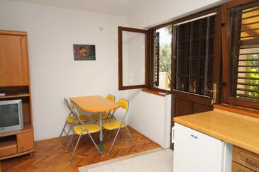 Ferienwohnung bietet Platz für 4 Gäste. Die Betten sind in Schlafzimmern, die es 1 gibt, und in Wohnzimmer, innerhalb einer Gesamtfläche von 39m2, angeordnet. Die Gäste haben eine eigene Terrasse zur Verfügung, auf der sie in warmen Sommernächten genießen können. Es ist erlaubt, Speisen auf dem Gemeinschafts-Grill vorzubereiten.