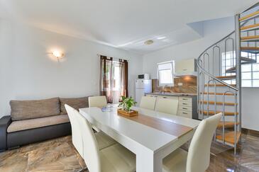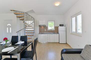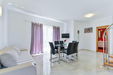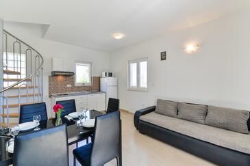 Ferienwohnung bietet Platz für 5 Gäste. Die Betten sind in Schlafzimmern, die es 2 gibt, und in Esszimmer, innerhalb einer Gesamtfläche von 57m2, angeordnet. Die Gäste haben einen eigenen Balkon zur Verfügung, auf der sie in warmen Sommernächten genießen können. Das Apartment bietet Meerblick. Es ist erlaubt, Speisen auf dem Gemeinschafts-Grill vorzubereiten. In der Unterkunftseinheit besteht die Möglichkeit des Mitbringens von Haustieren gegen Aufpreis.