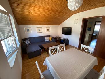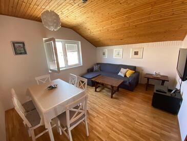 Ferienwohnung bietet Platz für 5 Gäste. Die Betten sind in Schlafzimmern, die es 2 gibt, und in Wohnzimmer, innerhalb einer Gesamtfläche von 59m2, angeordnet. Die Gäste haben einen eigenen Balkon zur Verfügung, auf der sie in warmen Sommernächten genießen können. Es ist erlaubt, Speisen auf dem Gemeinschafts-Grill vorzubereiten.