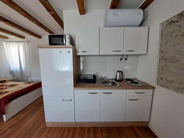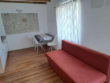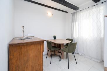 Studio bietet Platz für 3 Gäste. Die Betten sind in Schlafzimmern, die es 1 gibt, innerhalb einer Gesamtfläche von 25m2, angeordnet. Die Gäste haben eine eigene Terrasse zur Verfügung, auf der sie in warmen Sommernächten genießen können.
