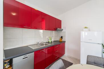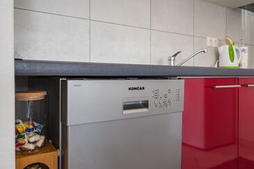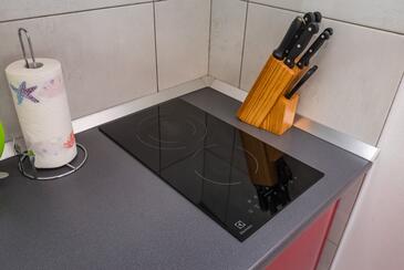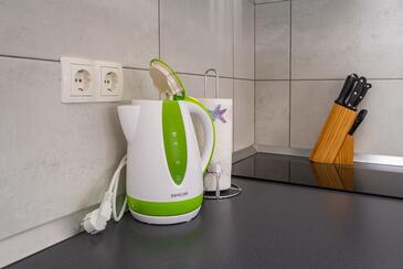 Ferienwohnung bietet Platz für 4 Gäste. Die Betten sind in Schlafzimmern, die es 2 gibt, innerhalb einer Gesamtfläche von 43m2, angeordnet. Die Gäste haben eine eigene Terrasse zur Verfügung, auf der sie in warmen Sommernächten genießen können. Es ist erlaubt, Speisen auf dem Gemeinschafts-Grill vorzubereiten.