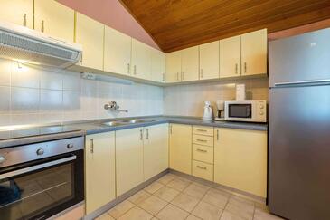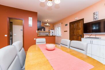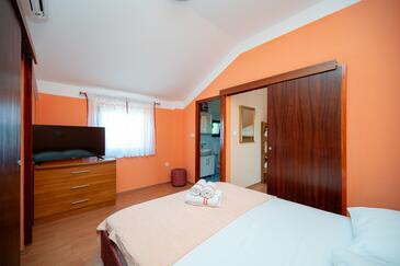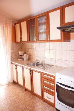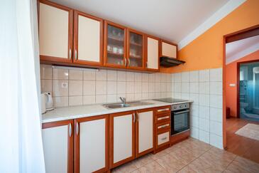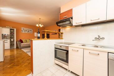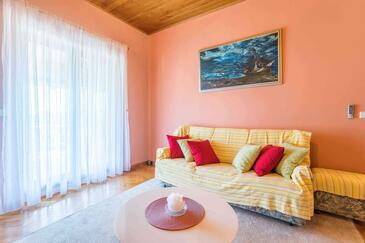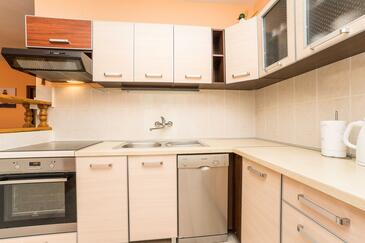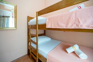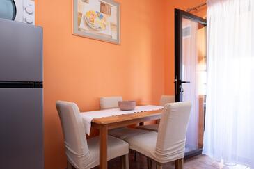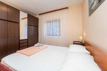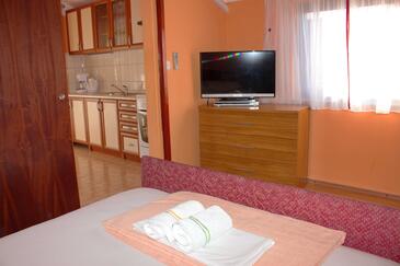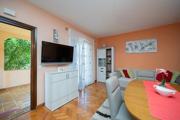 Ferienwohnung bietet Platz für 5 Gäste. Die Betten sind in Schlafzimmern, die es 2 gibt, und in Wohnzimmer, innerhalb einer Gesamtfläche von 45m2, angeordnet. Die Gäste haben eine eigene Terrasse zur Verfügung, auf der sie in warmen Sommernächten genießen können. Es ist erlaubt, Speisen auf dem Gemeinschafts-Grill vorzubereiten.