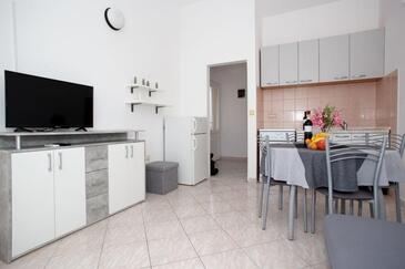 Ferienwohnung bietet Platz für 4 Gäste. Die Betten sind in Schlafzimmern, die es 1 gibt, und in Wohnzimmer, innerhalb einer Gesamtfläche von 34m2, angeordnet. Die Gäste haben einen eigenen Balkon zur Verfügung, auf der sie in warmen Sommernächten genießen können. Es ist erlaubt, Speisen auf dem Gemeinschafts-Grill vorzubereiten.