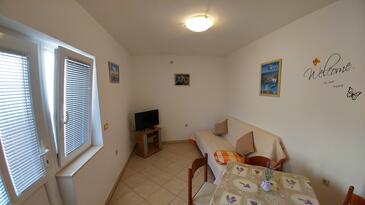Ferienwohnung bietet Platz für 4 Gäste. Die Betten sind in Schlafzimmern, die es 2 gibt, innerhalb einer Gesamtfläche von 52m2, angeordnet. Die Gäste haben eine eigene Terrasse zur Verfügung, auf der sie in warmen Sommernächten genießen können. Es ist erlaubt, Speisen auf dem Gemeinschafts-Grill vorzubereiten.