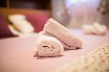 Ferienwohnung bietet Platz für 4 Gäste. Die Betten sind in Schlafzimmern, die es 2 gibt, innerhalb einer Gesamtfläche von 51m2, angeordnet. Die Gäste haben einen eigenen Balkon zur Verfügung, auf der sie in warmen Sommernächten genießen können. Das Apartment bietet Meerblick. Es ist erlaubt, Speisen auf dem Gemeinschafts-Grill vorzubereiten. In der Unterkunftseinheit besteht die Möglichkeit des Mitbringens von Haustieren gegen Aufpreis.