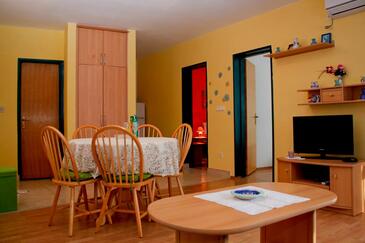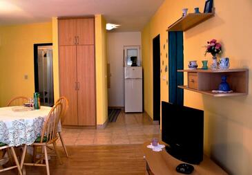 Ferienwohnung bietet Platz für 5 Gäste. Die Betten sind in Schlafzimmern, die es 2 gibt, und in Wohnzimmer, innerhalb einer Gesamtfläche von 45m2, angeordnet. Die Gäste haben einen eigenen Balkon zur Verfügung, auf der sie in warmen Sommernächten genießen können. Es ist erlaubt, Speisen auf dem Gemeinschafts-Grill vorzubereiten.