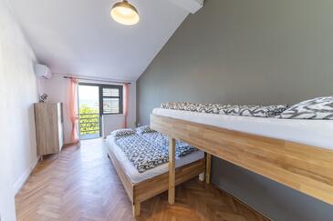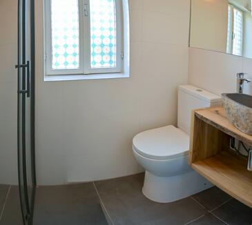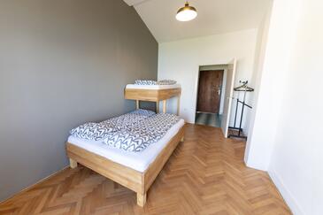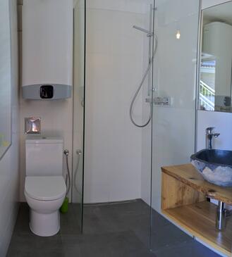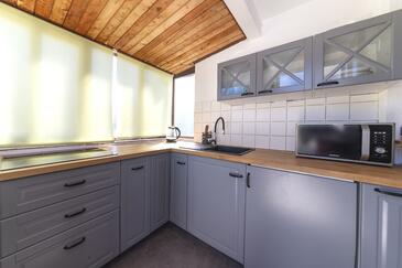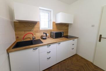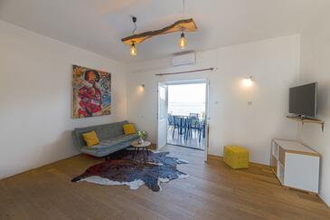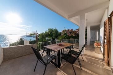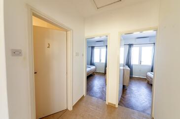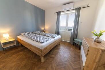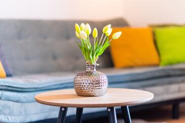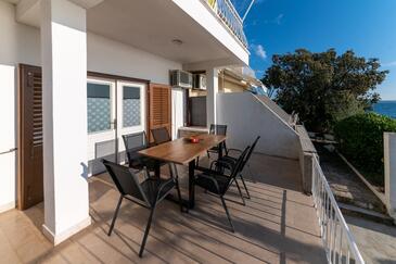 Ferienwohnung bietet Platz für 5 Gäste. Die Betten sind in Schlafzimmern, die es 2 gibt, und in Wohnzimmer, innerhalb einer Gesamtfläche von 42m2, angeordnet. Die Gäste haben eine eigene Terrasse zur Verfügung, auf der sie in warmen Sommernächten genießen können. Das Apartment bietet Meerblick. Es ist erlaubt, Speisen auf dem Gemeinschafts-Grill vorzubereiten.