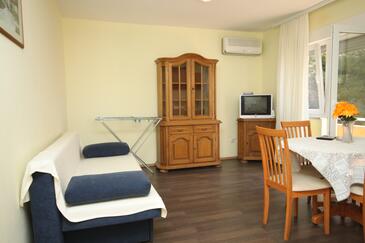 Ferienwohnung bietet Platz für 4 Gäste. Die Betten sind in Schlafzimmern, die es 1 gibt, und in Wohnzimmer, innerhalb einer Gesamtfläche von 33m2, angeordnet. Die Gäste haben einen eigenen Balkon zur Verfügung, auf der sie in warmen Sommernächten genießen können. Das Apartment bietet Meerblick. Es ist erlaubt, Speisen auf dem Gemeinschafts-Grill vorzubereiten. In der Unterkunftseinheit besteht die Möglichkeit des Mitbringens von Haustieren gegen Aufpreis.