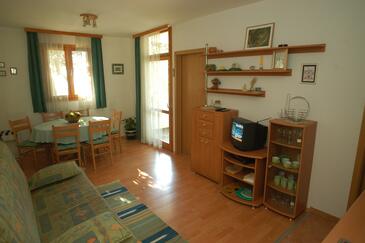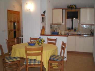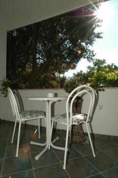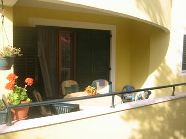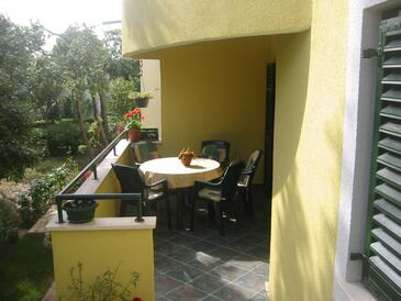 Ferienwohnung bietet Platz für 6 Gäste. Die Betten sind in Schlafzimmern, die es 2 gibt, und in Wohnzimmer, innerhalb einer Gesamtfläche von 49m2, angeordnet. Die Gäste haben eine eigene Terrasse zur Verfügung, auf der sie in warmen Sommernächten genießen können. Das Apartment bietet Meerblick. Es ist erlaubt, Speisen auf dem Gemeinschafts-Grill vorzubereiten.