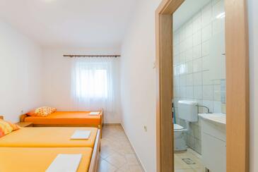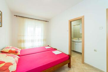 Ferienwohnung bietet Platz für 10 Gäste. Die Betten sind in Schlafzimmern, die es 4 gibt, innerhalb einer Gesamtfläche von 102m2, angeordnet. Die Gäste haben eine eigene Terrasse zur Verfügung, auf der sie in warmen Sommernächten genießen können. Es ist erlaubt, Speisen auf dem Gemeinschafts-Grill vorzubereiten.