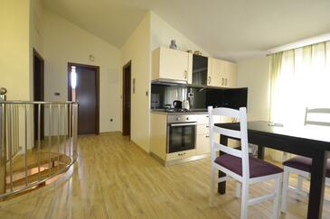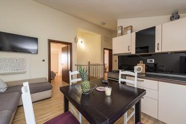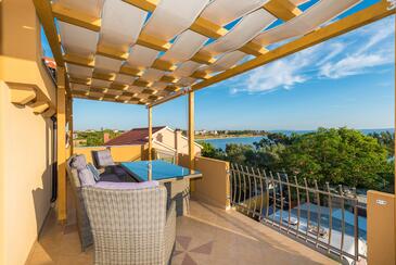 Ferienwohnung bietet Platz für 6 Gäste. Die Betten sind in Schlafzimmern, die es 3 gibt, innerhalb einer Gesamtfläche von 106m2, angeordnet. Die Gäste haben eine eigene Terrasse zur Verfügung, auf der sie in warmen Sommernächten genießen können. Das Apartment bietet Meerblick. Für vollen Genuss und Entspannung gibt es einen privaten Grill für Gäste dieser Unterkunft.