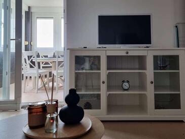 Ferienwohnung bietet Platz für 4 Gäste. Die Betten sind in Schlafzimmern, die es 2 gibt, innerhalb einer Gesamtfläche von 57m2, angeordnet. Die Gäste haben einen eigenen Balkon zur Verfügung, auf der sie in warmen Sommernächten genießen können. Das Apartment bietet Meerblick.