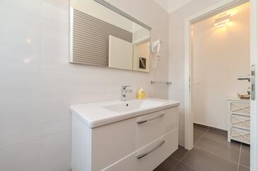 Ferienwohnung bietet Platz für 4 Gäste. Die Betten sind in Schlafzimmern, die es 2 gibt, innerhalb einer Gesamtfläche von 58m2, angeordnet. Die Gäste haben eine eigene Terrasse zur Verfügung, auf der sie in warmen Sommernächten genießen können. Das Apartment bietet Meerblick. Es ist erlaubt, Speisen auf dem Gemeinschafts-Grill vorzubereiten.