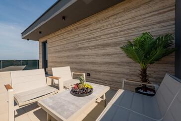 Haus bietet Platz für 10 Gäste. Die Betten sind in Schlafzimmern, die es 5 gibt, innerhalb einer Gesamtfläche von 182m2, angeordnet. Die Gäste haben eine eigene Terrasse zur Verfügung, auf der sie in warmen Sommernächten genießen können. Das Haus bietet Meerblick. Für vollen Genuss und Entspannung gibt es einen privaten Grill für Gäste dieser Unterkunft. Während ihres Aufenthalts können sich Gäste im privaten Schwimmbad entspannen.