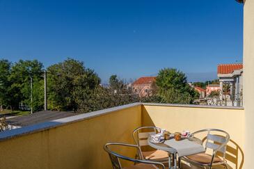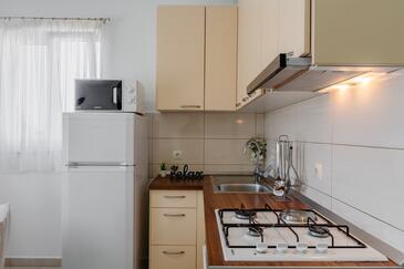 Ferienwohnung bietet Platz für 5 Gäste. Die Betten sind in Schlafzimmern, die es 2 gibt, und in Esszimmer, innerhalb einer Gesamtfläche von 38m2, angeordnet. Die Gäste haben eine eigene Terrasse zur Verfügung, auf der sie in warmen Sommernächten genießen können. Es ist erlaubt, Speisen auf dem Gemeinschafts-Grill vorzubereiten.