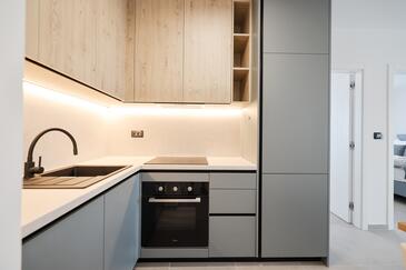 Ferienwohnung bietet Platz für 3 Gäste. Die Betten sind in Schlafzimmern, die es 1 gibt, und in Wohnzimmer, innerhalb einer Gesamtfläche von 48m2, angeordnet. Die Gäste haben eine eigene Terrasse zur Verfügung, auf der sie in warmen Sommernächten genießen können. Es ist erlaubt, Speisen auf dem Gemeinschafts-Grill vorzubereiten.