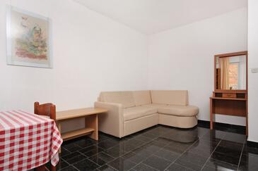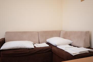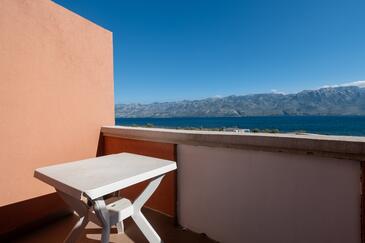 Ferienwohnung bietet Platz für 4 Gäste. Die Betten sind in Schlafzimmern, die es 1 gibt, und in Wohnzimmer, innerhalb einer Gesamtfläche von 31m2, angeordnet. Die Gäste haben eine eigene Terrasse zur Verfügung, auf der sie in warmen Sommernächten genießen können. Das Apartment bietet Meerblick. Es ist erlaubt, Speisen auf dem Gemeinschafts-Grill vorzubereiten. In der Unterkunftseinheit besteht die Möglichkeit des Mitbringens von Haustieren gegen Aufpreis.