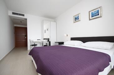 Zimmer bietet Platz für 2 Gäste. Die Betten sind in Schlafzimmern, die es 1 gibt, innerhalb einer Gesamtfläche von 25m2, angeordnet. Die Gäste haben einen eigenen Balkon zur Verfügung, auf der sie in warmen Sommernächten genießen können. Das Zimmer bietet Meerblick. Es ist erlaubt, Speisen auf dem Gemeinschafts-Grill vorzubereiten. In der Unterkunftseinheit besteht die Möglichkeit des Mitbringens von Haustieren gegen Aufpreis. Die reservierte Unterkunftseinheit ist ein Zimmer mit eigenem Badezimmer ohne die Möglichkeit der Nutzung einer Küche.