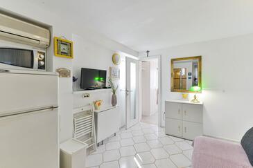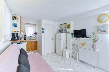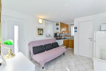 Ferienwohnung bietet Platz für 4 Gäste. Die Betten sind in Schlafzimmern, die es 1 gibt, und in Wohnzimmer, innerhalb einer Gesamtfläche von 42m2, angeordnet. Die Gäste haben eine eigene Terrasse zur Verfügung, auf der sie in warmen Sommernächten genießen können. Für vollen Genuss und Entspannung gibt es einen privaten Grill für Gäste dieser Unterkunft. In der Unterkunftseinheit besteht die Möglichkeit des Mitbringens von Haustieren gegen Aufpreis.
