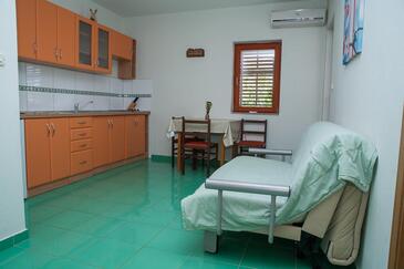 Ferienwohnung bietet Platz für 4 Gäste. Die Betten sind in Schlafzimmern, die es 1 gibt, und in Esszimmer, innerhalb einer Gesamtfläche von 28m2, angeordnet. Die Gäste haben eine eigene Terrasse zur Verfügung, auf der sie in warmen Sommernächten genießen können. Es ist erlaubt, Speisen auf dem Gemeinschafts-Grill vorzubereiten. In der Unterkunftseinheit besteht die Möglichkeit des Mitbringens von Haustieren gegen Aufpreis.