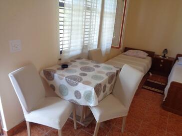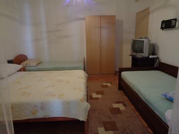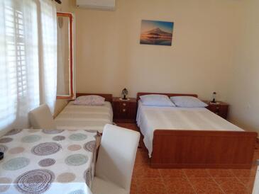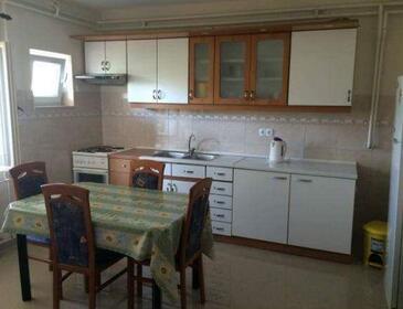 Ferienwohnung bietet Platz für 6 Gäste. Die Betten sind in Schlafzimmern, die es 2 gibt, innerhalb einer Gesamtfläche von 57m2, angeordnet. Die Gäste haben eine eigene Terrasse zur Verfügung, auf der sie in warmen Sommernächten genießen können. Es ist erlaubt, Speisen auf dem Gemeinschafts-Grill vorzubereiten.