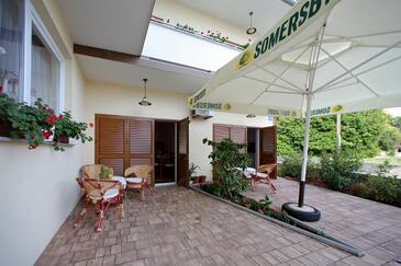 Ferienwohnung bietet Platz für 5 Gäste. Die Betten sind in Schlafzimmern, die es 2 gibt, und in Wohnzimmer, innerhalb einer Gesamtfläche von 63m2, angeordnet. Die Gäste haben einen eigenen Balkon zur Verfügung, auf der sie in warmen Sommernächten genießen können. Es ist erlaubt, Speisen auf dem Gemeinschafts-Grill vorzubereiten.