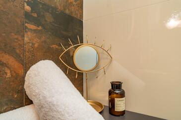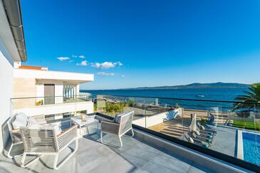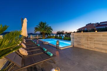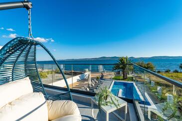 Haus bietet Platz für 9 Gäste. Die Betten sind in Schlafzimmern, die es 4 gibt, und in Wohnzimmer, innerhalb einer Gesamtfläche von 160m2, angeordnet. Die Gäste haben eine eigene Terrasse zur Verfügung, auf der sie in warmen Sommernächten genießen können. Das Haus bietet Meerblick. Während ihres Aufenthalts können sich Gäste im privaten Schwimmbad entspannen. In der Unterkunftseinheit besteht die Möglichkeit des Mitbringens von Haustieren, und die Dienstleistung ist im Preis der Unterkunft enthalten.