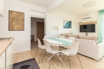 Ferienwohnung bietet Platz für 4 Gäste. Die Betten sind in Schlafzimmern, die es 2 gibt, innerhalb einer Gesamtfläche von 66m2, angeordnet. Die Gäste haben eine eigene Terrasse zur Verfügung, auf der sie in warmen Sommernächten genießen können. Das Apartment bietet Meerblick. Für vollen Genuss und Entspannung gibt es einen privaten Grill für Gäste dieser Unterkunft.