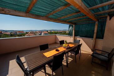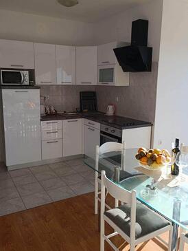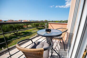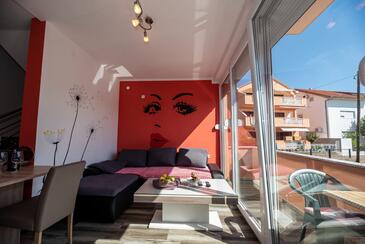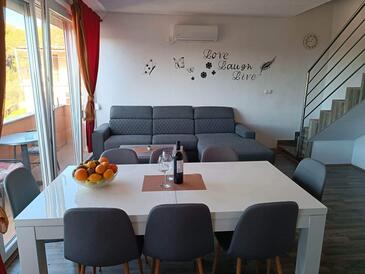 Ferienwohnung bietet Platz für 7 Gäste. Die Betten sind in Schlafzimmern, die es 2 gibt, und in Wohnzimmer, innerhalb einer Gesamtfläche von 61m2, angeordnet. Die Gäste haben eine eigene Terrasse zur Verfügung, auf der sie in warmen Sommernächten genießen können. Das Apartment bietet Meerblick. Es ist erlaubt, Speisen auf dem Gemeinschafts-Grill vorzubereiten. Während ihres Aufenthalts können Gäste das gemeinsam zur Nutzung stehende Schwimmbad benutzen.