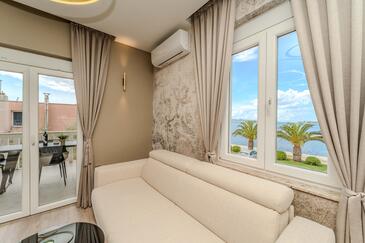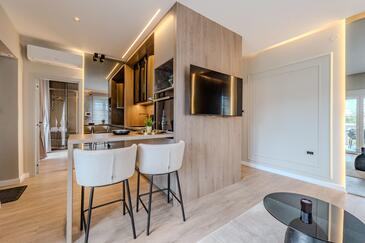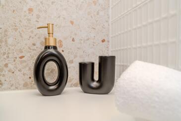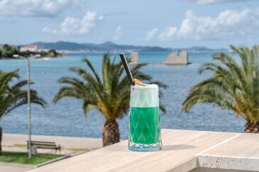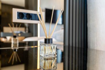 Ferienwohnung bietet Platz für 2 Gäste. Die Betten sind in Schlafzimmern, die es 1 gibt, innerhalb einer Gesamtfläche von 38m2, angeordnet. Die Gäste haben einen eigenen Balkon zur Verfügung, auf der sie in warmen Sommernächten genießen können. Das Apartment bietet Meerblick. Es ist erlaubt, Speisen auf dem Gemeinschafts-Grill vorzubereiten.