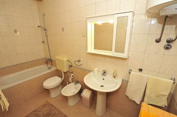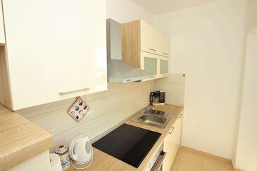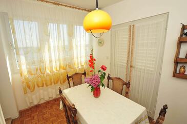 Ferienwohnung bietet Platz für 5 Gäste. Die Betten sind in Schlafzimmern, die es 2 gibt, innerhalb einer Gesamtfläche von 65m2, angeordnet. Die Gäste haben eine eigene Terrasse zur Verfügung, auf der sie in warmen Sommernächten genießen können. Das Apartment bietet Meerblick. Es ist erlaubt, Speisen auf dem Gemeinschafts-Grill vorzubereiten.