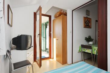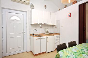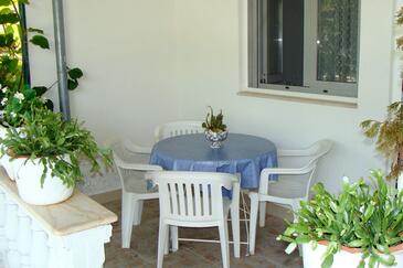 Ferienwohnung bietet Platz für 4 Gäste. Die Betten sind in Schlafzimmern, die es 2 gibt, innerhalb einer Gesamtfläche von 57m2, angeordnet. Die Gäste haben eine eigene Terrasse zur Verfügung, auf der sie in warmen Sommernächten genießen können. Es ist erlaubt, Speisen auf dem Gemeinschafts-Grill vorzubereiten.