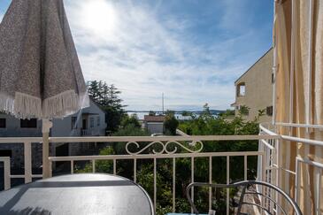 Ferienwohnung bietet Platz für 4 Gäste. Die Betten sind in Schlafzimmern, die es 1 gibt, und in Wohnzimmer, innerhalb einer Gesamtfläche von 46m2, angeordnet. Die Gäste haben eine eigene Terrasse zur Verfügung, auf der sie in warmen Sommernächten genießen können. Das Apartment bietet Meerblick. Es ist erlaubt, Speisen auf dem Gemeinschafts-Grill vorzubereiten.