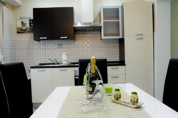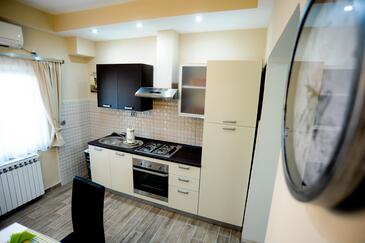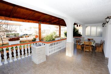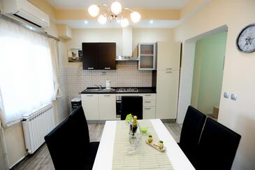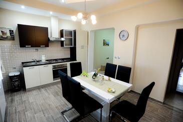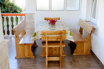 Ferienwohnung bietet Platz für 6 Gäste. Die Betten sind in Schlafzimmern, die es 2 gibt, und in Wohnzimmer, innerhalb einer Gesamtfläche von 51m2, angeordnet. Die Gäste haben eine eigene Terrasse zur Verfügung, auf der sie in warmen Sommernächten genießen können. Es ist erlaubt, Speisen auf dem Gemeinschafts-Grill vorzubereiten.