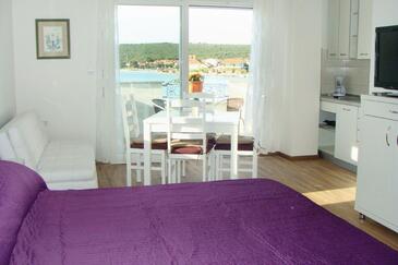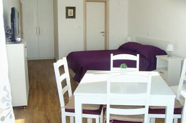 Studio bietet Platz für 2 Gäste. Die Betten sind in Schlafzimmern, die es 1 gibt, innerhalb einer Gesamtfläche von 27m2, angeordnet. Die Gäste haben einen eigenen Balkon zur Verfügung, auf der sie in warmen Sommernächten genießen können. Das Studio-Apartment bietet Meerblick. Es ist erlaubt, Speisen auf dem Gemeinschafts-Grill vorzubereiten.