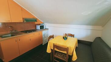 Ferienwohnung bietet Platz für 5 Gäste. Die Betten sind in Schlafzimmern, die es 2 gibt, innerhalb einer Gesamtfläche von 36m2, angeordnet. Die Gäste haben eine eigene Terrasse zur Verfügung, auf der sie in warmen Sommernächten genießen können. Es ist erlaubt, Speisen auf dem Gemeinschafts-Grill vorzubereiten.