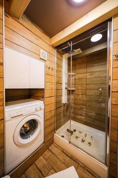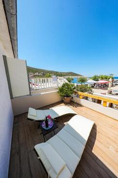 Haus bietet Platz für 8 Gäste. Die Betten sind in Schlafzimmern, die es 3 gibt, innerhalb einer Gesamtfläche von 78m2, angeordnet. Die Gäste haben einen eigenen Balkon zur Verfügung, auf der sie in warmen Sommernächten genießen können. Das Haus bietet Meerblick. Für vollen Genuss und Entspannung gibt es einen privaten Grill für Gäste dieser Unterkunft. In der Unterkunftseinheit besteht die Möglichkeit des Mitbringens von Haustieren, und die Dienstleistung ist im Preis der Unterkunft enthalten.