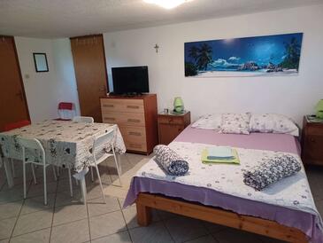 Studio bietet Platz für 2 Gäste. Die Betten sind in Schlafzimmern, die es 1 gibt, innerhalb einer Gesamtfläche von 24m2, angeordnet. Die Gäste haben eine eigene Terrasse zur Verfügung, auf der sie in warmen Sommernächten genießen können. Das Studio-Apartment bietet Meerblick. Es ist erlaubt, Speisen auf dem Gemeinschafts-Grill vorzubereiten.