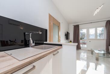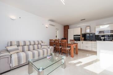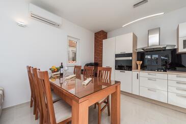 Haus bietet Platz für 8 Gäste. Die Betten sind in Schlafzimmern, die es 3 gibt, und in Wohnzimmer, innerhalb einer Gesamtfläche von 100m2, angeordnet. Die Gäste haben eine eigene Terrasse zur Verfügung, auf der sie in warmen Sommernächten genießen können. Für vollen Genuss und Entspannung gibt es einen privaten Grill für Gäste dieser Unterkunft. In der gebuchten Unterkunftseinheit zahlt man am Ort ein Depositum ( der Preis ist an der Internetseite angeführt ).