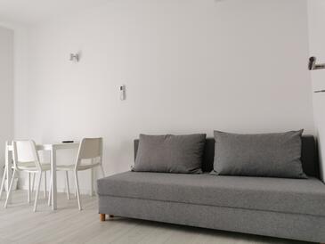 Ferienwohnung bietet Platz für 3 Gäste. Die Betten sind in Schlafzimmern, die es 2 gibt, innerhalb einer Gesamtfläche von 37m2, angeordnet. Die Gäste haben eine eigene Terrasse zur Verfügung, auf der sie in warmen Sommernächten genießen können.